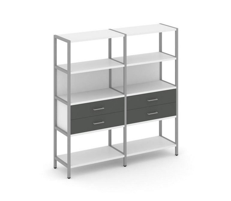 Shelf System Двухсекционный стеллаж четырехярусный с ящиками SN.STM-422 Белый/Антрацит/Металл Серый