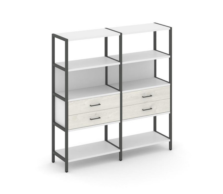 Shelf System Двухсекционный стеллаж четырехярусный с ящиками SN.STM-422 Белый/Дуб Наварра/Металл Ант