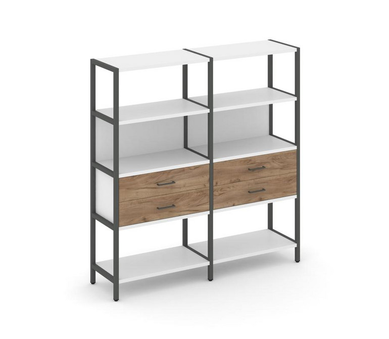 Shelf System Двухсекционный стеллаж четырехярусный с ящиками SN.STM-422 Белый/Дуб Табак/Металл Антра