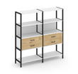 Shelf System Двухсекционный стеллаж четырехярусный с ящиками SN.STM-422 Белый/Тиквуд Светлый/Металл