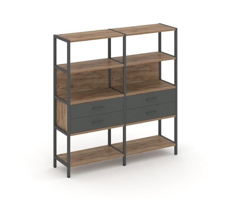 Shelf System Двухсекционный стеллаж четырехярусный с ящиками SN.STM-422 Дуб Табак/Антрацит/Металл Ан