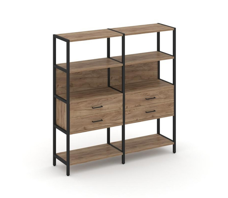 Shelf System Двухсекционный стеллаж четырехярусный с ящиками SN.STM-422 Дуб Табак/Металл Черный 1590