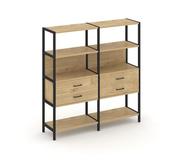 Shelf System Двухсекционный стеллаж четырехярусный с ящиками SN.STM-422 Тиквуд Светлый/Металл Черный