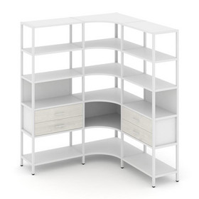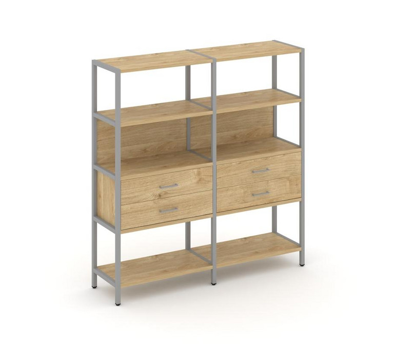 Shelf System Двухсекционный стеллаж четырехярусный с ящиками SN.STM-422 Тиквуд Светлый/Металл Серый