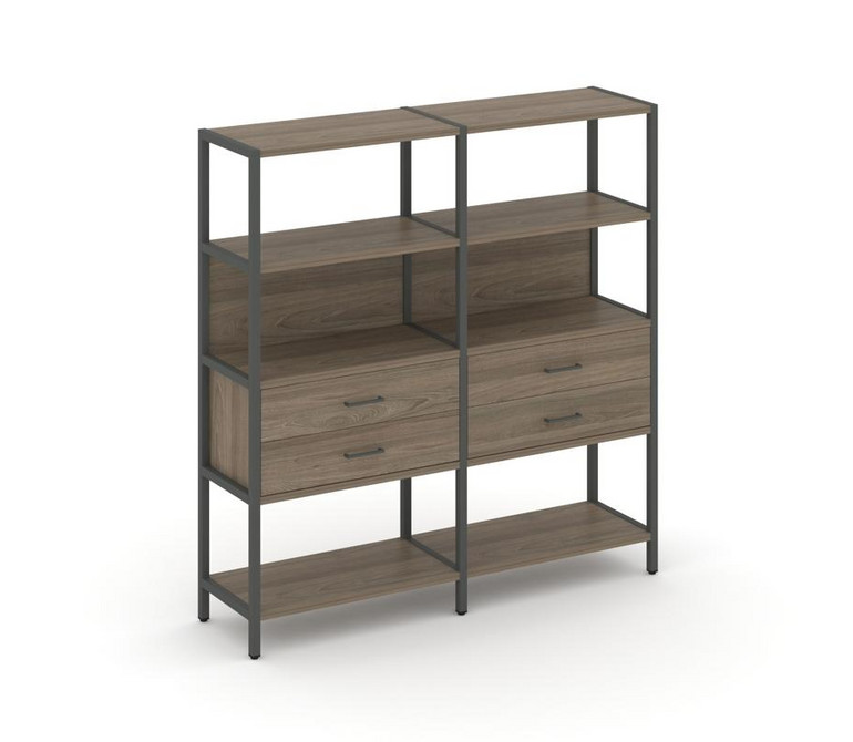 Shelf System Двухсекционный стеллаж четырехярусный с ящиками SN.STM-422 Вяз Благородный/Металл Антра