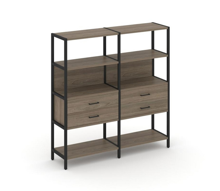 Shelf System Двухсекционный стеллаж четырехярусный с ящиками SN.STM-422 Вяз Благородный/Металл Черны