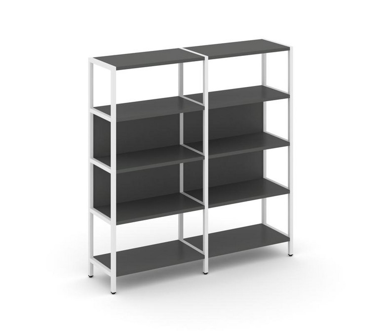 Shelf System Двухсекционный стеллаж четырехярусный SN.STM-421 Антрацит/Металл Белый 1590*400*1613