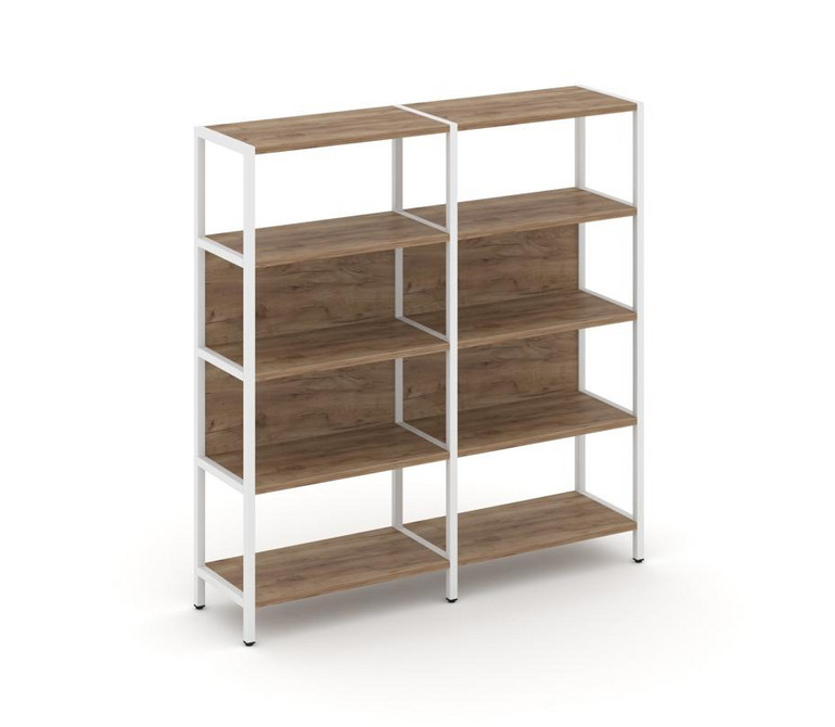 Shelf System Двухсекционный стеллаж четырехярусный SN.STM-421 Дуб Табак/Металл Белый 1590*400*1613
