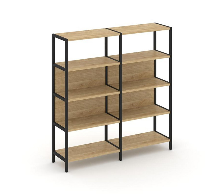 Shelf System Двухсекционный стеллаж четырехярусный SN.STM-421 Тиквуд Светлый/Металл Черный 1590*400*