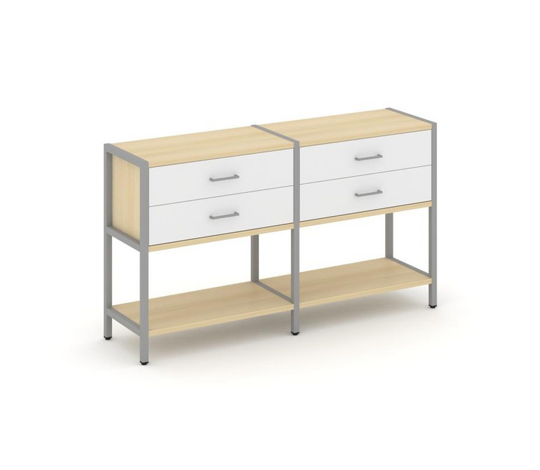 Shelf System Двухсекционный стеллаж двухярусный с ящиками SN.STM-222 Акация Лорка/Белый/Металл Серый