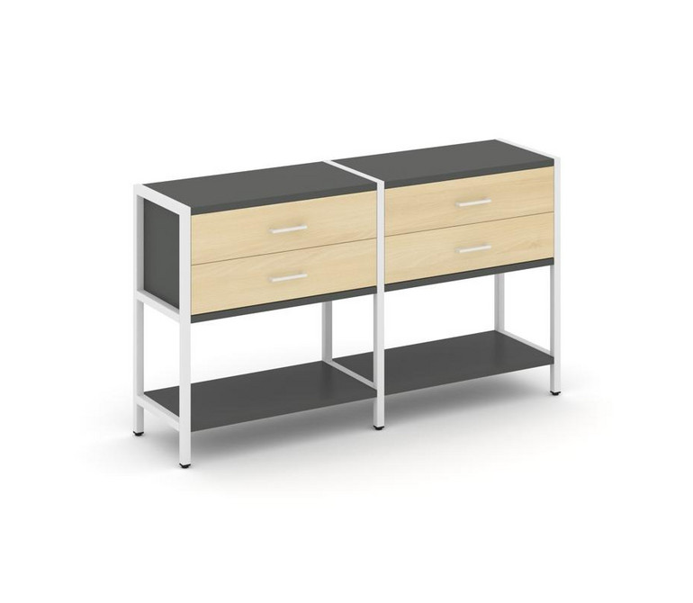Shelf System Двухсекционный стеллаж двухярусный с ящиками SN.STM-222 Антрацит/Акация Лорка/Металл Бе