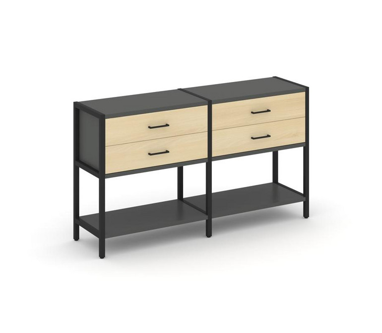 Shelf System Двухсекционный стеллаж двухярусный с ящиками SN.STM-222 Антрацит/Акация Лорка/Металл Че