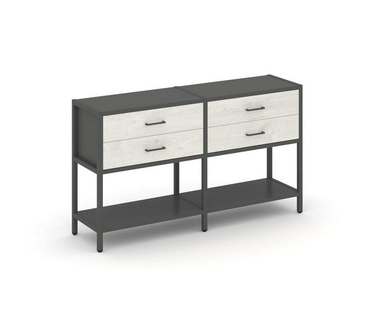 Shelf System Двухсекционный стеллаж двухярусный с ящиками SN.STM-222 Антрацит/Дуб Наварра/Металл Ант