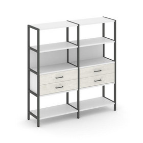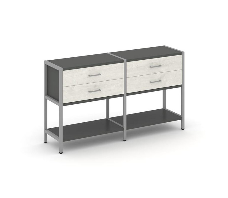 Shelf System Двухсекционный стеллаж двухярусный с ящиками SN.STM-222 Антрацит/Дуб Наварра/Металл Сер