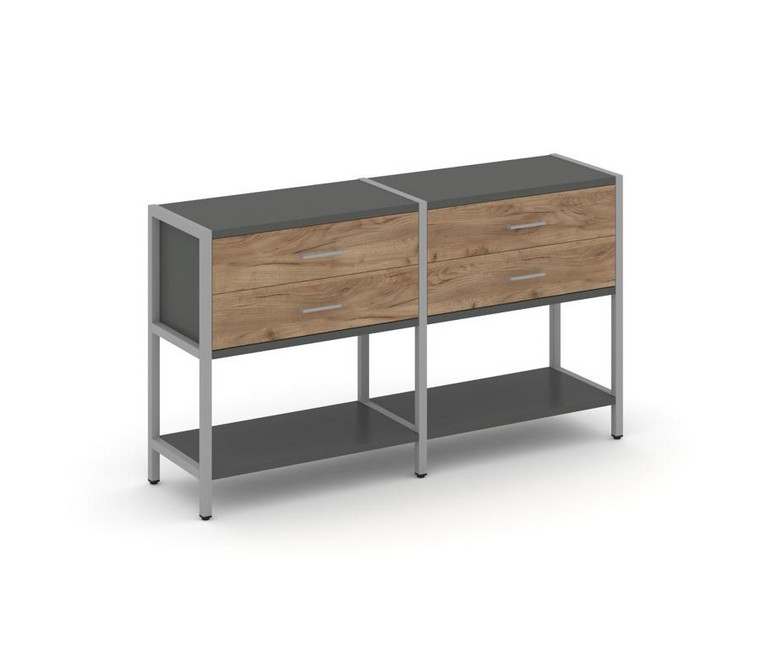 Shelf System Двухсекционный стеллаж двухярусный с ящиками SN.STM-222 Антрацит/Дуб Табак/Металл Серый