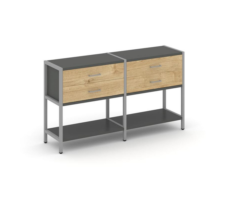 Shelf System Двухсекционный стеллаж двухярусный с ящиками SN.STM-222 Антрацит/Тиквуд Светлый/Металл