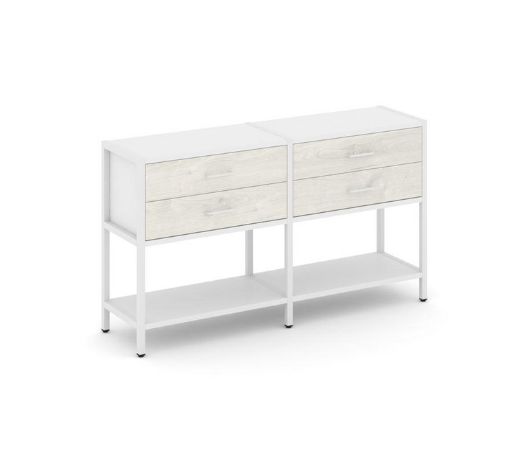 Shelf System Двухсекционный стеллаж двухярусный с ящиками SN.STM-222 Белый/Дуб Наварра/Металл Белый