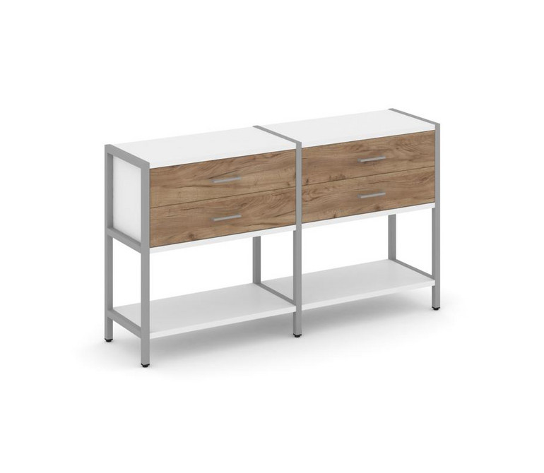 Shelf System Двухсекционный стеллаж двухярусный с ящиками SN.STM-222 Белый/Дуб Табак/Металл Серый 15