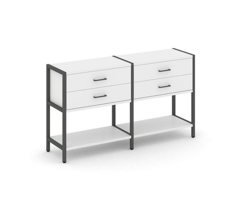 Shelf System Двухсекционный стеллаж двухярусный с ящиками SN.STM-222 Белый/Металл Антрацит 1590*400*