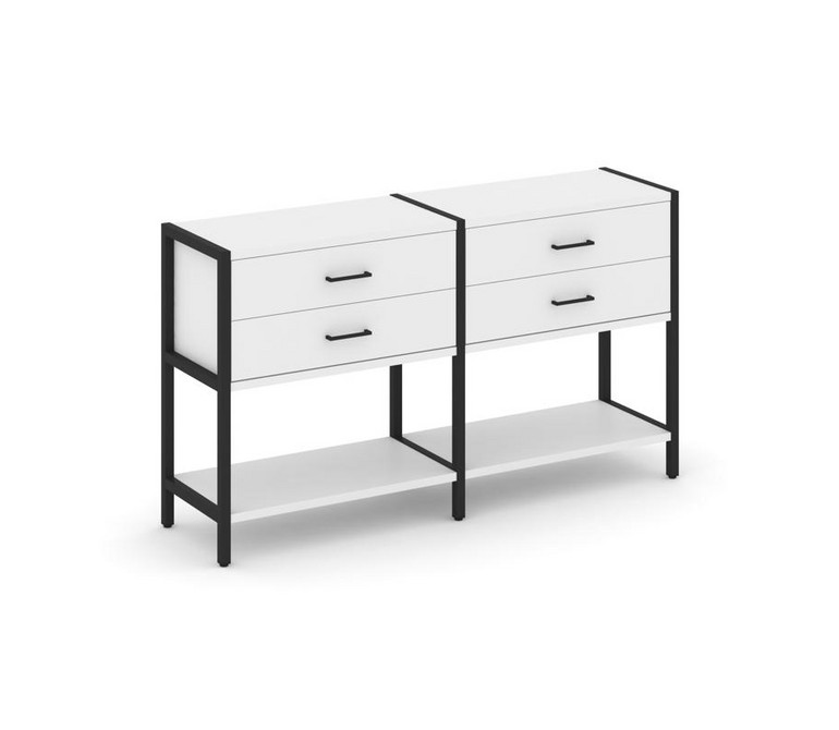 Shelf System Двухсекционный стеллаж двухярусный с ящиками SN.STM-222 Белый/Металл Черный 1590*400*87