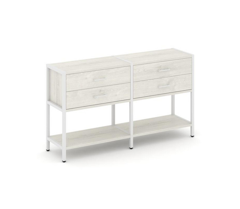 Shelf System Двухсекционный стеллаж двухярусный с ящиками SN.STM-222 Дуб Наварра/Металл Белый 1590*4
