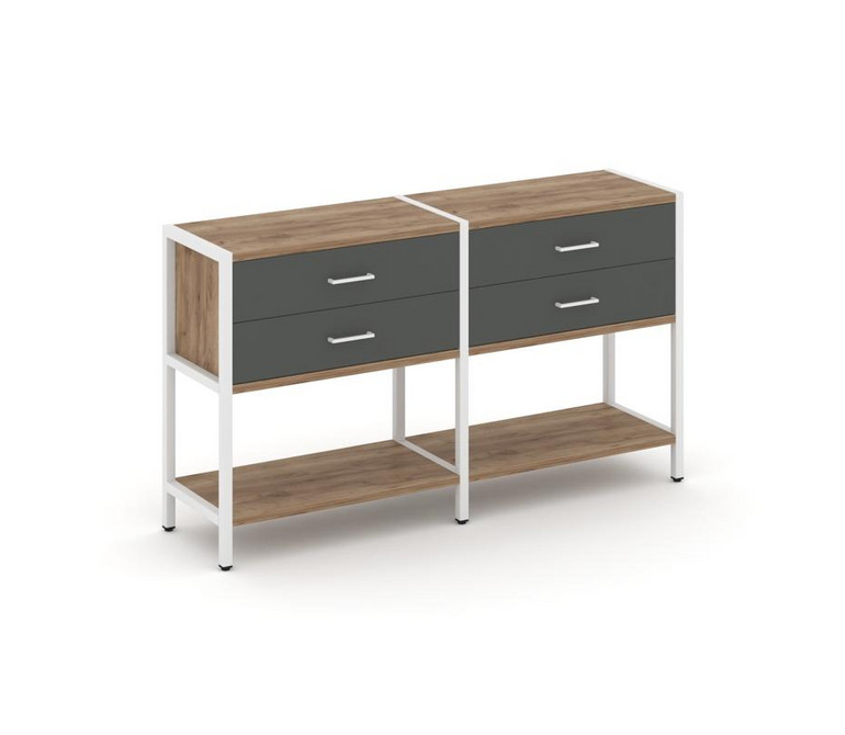 Shelf System Двухсекционный стеллаж двухярусный с ящиками SN.STM-222 Дуб Табак/Антрацит/Металл Белый