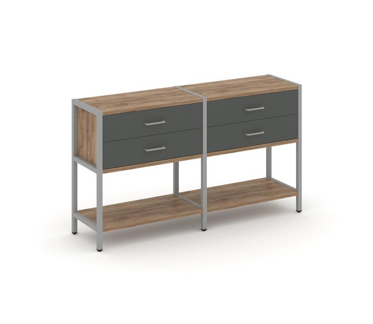 Shelf System Двухсекционный стеллаж двухярусный с ящиками SN.STM-222 Дуб Табак/Антрацит/Металл Серый