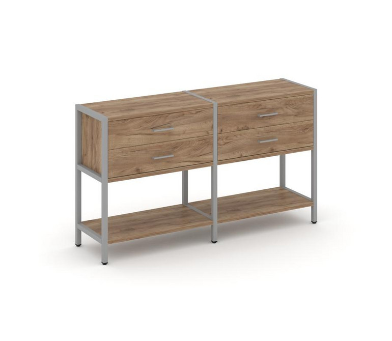Shelf System Двухсекционный стеллаж двухярусный с ящиками SN.STM-222 Дуб Табак/Металл Серый 1590*400