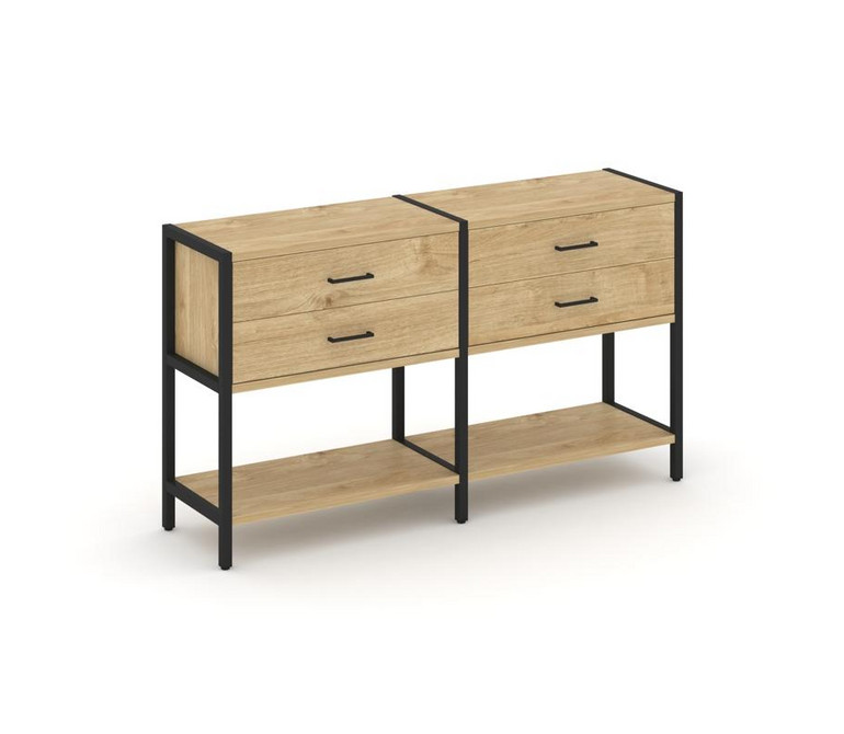 Shelf System Двухсекционный стеллаж двухярусный с ящиками SN.STM-222 Тиквуд Светлый/Металл Черный 15