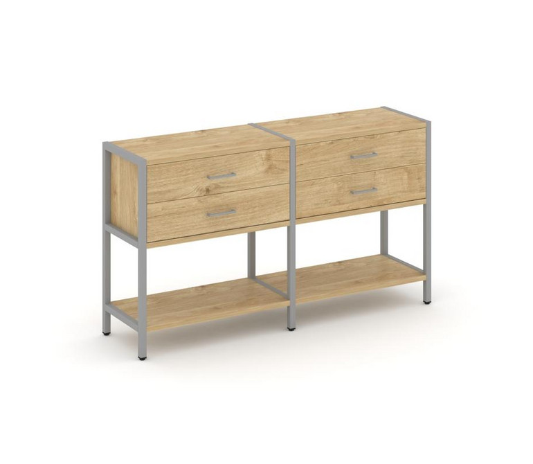 Shelf System Двухсекционный стеллаж двухярусный с ящиками SN.STM-222 Тиквуд Светлый/Металл Серый 159