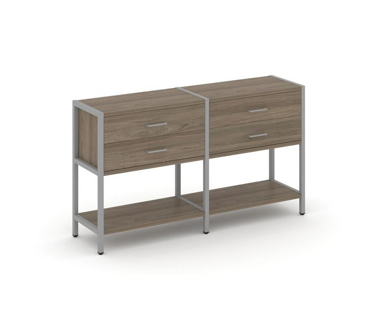 Shelf System Двухсекционный стеллаж двухярусный с ящиками SN.STM-222 Вяз Благородный/Металл Серый 15