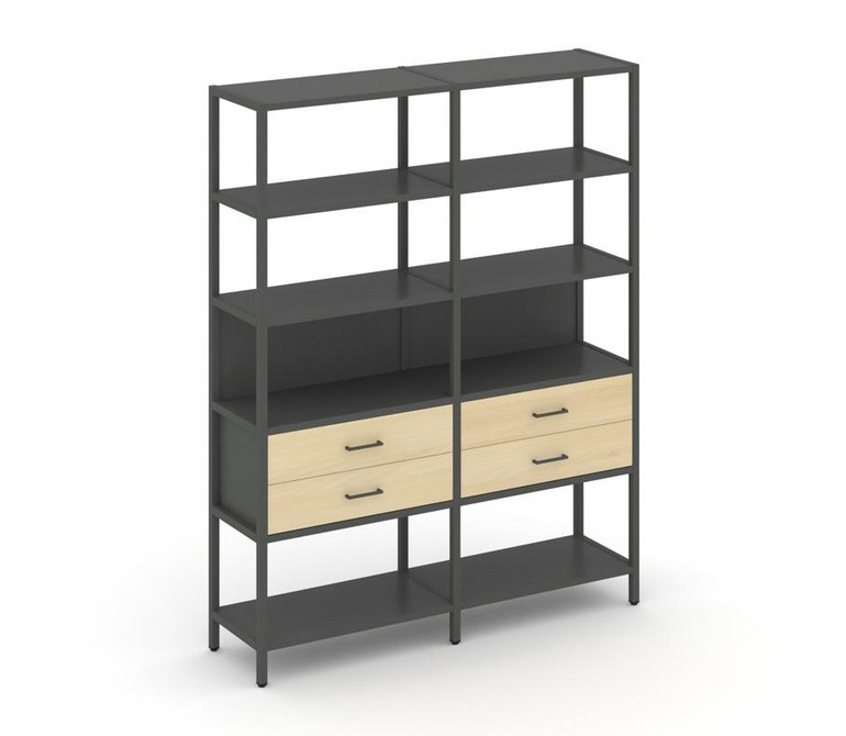 Shelf System Двухсекционный стеллаж пятиярусный с ящиками SN.STM-522 Антрацит/Акация Лорка/Металл Ан