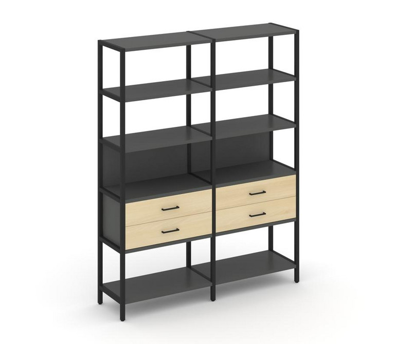 Shelf System Двухсекционный стеллаж пятиярусный с ящиками SN.STM-522 Антрацит/Акация Лорка/Металл Че
