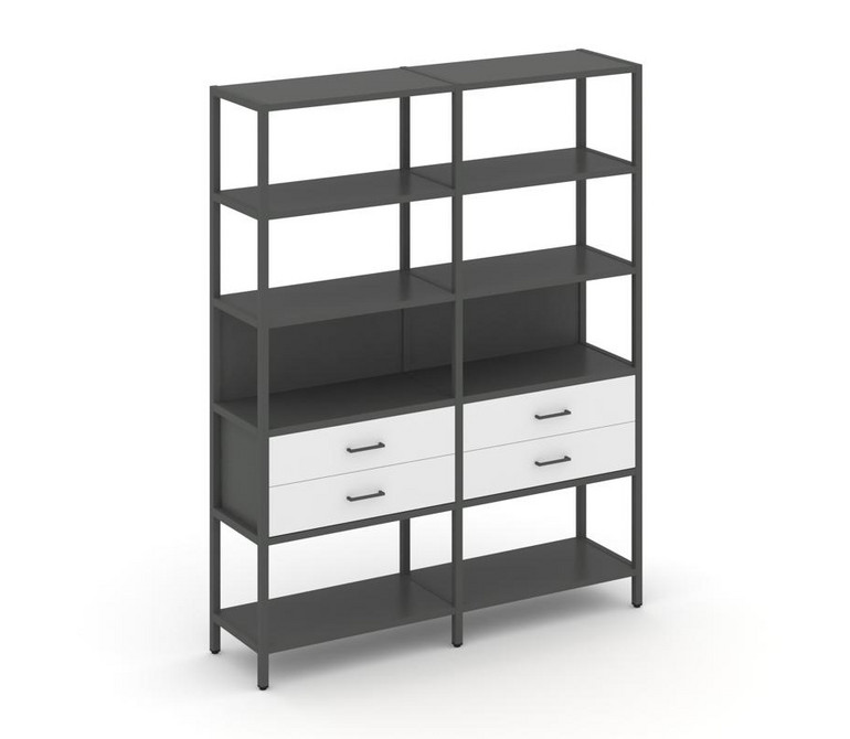 Shelf System Двухсекционный стеллаж пятиярусный с ящиками SN.STM-522 Антрацит/Белый/Металл Антрацит