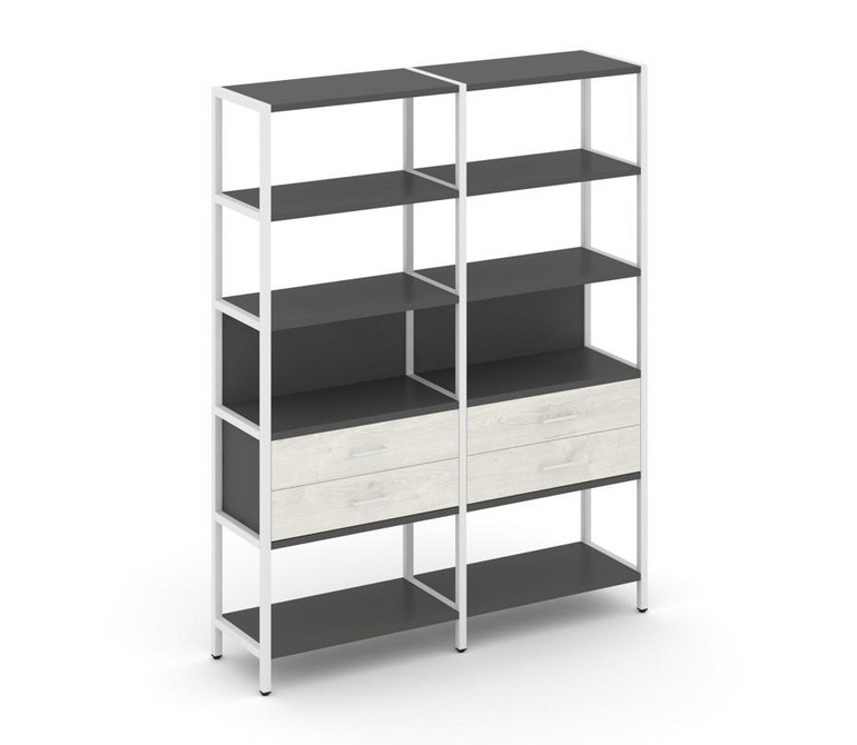 Shelf System Двухсекционный стеллаж пятиярусный с ящиками SN.STM-522 Антрацит/Дуб Наварра/Металл Бел