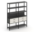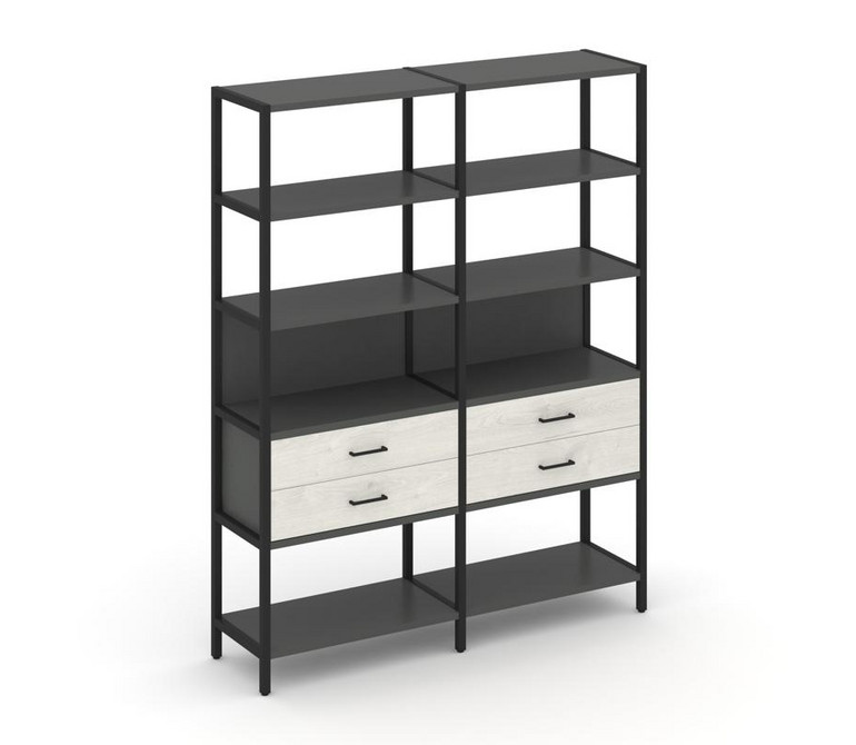 Shelf System Двухсекционный стеллаж пятиярусный с ящиками SN.STM-522 Антрацит/Дуб Наварра/Металл Чер