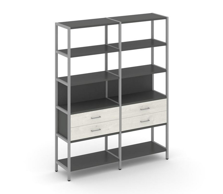 Shelf System Двухсекционный стеллаж пятиярусный с ящиками SN.STM-522 Антрацит/Дуб Наварра/Металл Сер