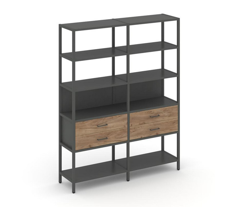 Shelf System Двухсекционный стеллаж пятиярусный с ящиками SN.STM-522 Антрацит/Дуб Табак/Металл Антра