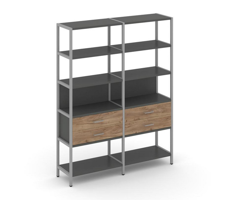 Shelf System Двухсекционный стеллаж пятиярусный с ящиками SN.STM-522 Антрацит/Дуб Табак/Металл Серый