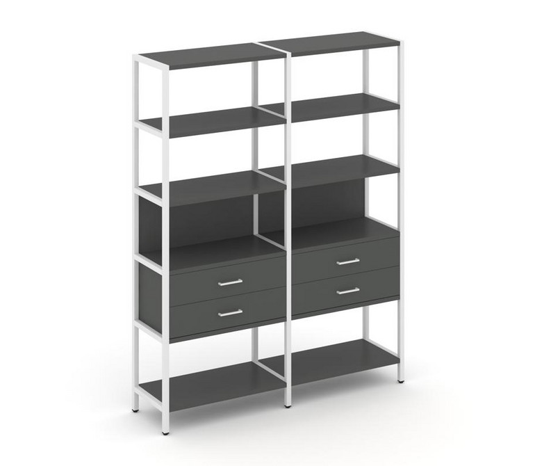 Shelf System Двухсекционный стеллаж пятиярусный с ящиками SN.STM-522 Антрацит/Металл Белый 1590*400*
