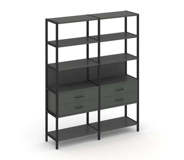 Shelf System Двухсекционный стеллаж пятиярусный с ящиками SN.STM-522 Антрацит/Металл Черный 1590*400