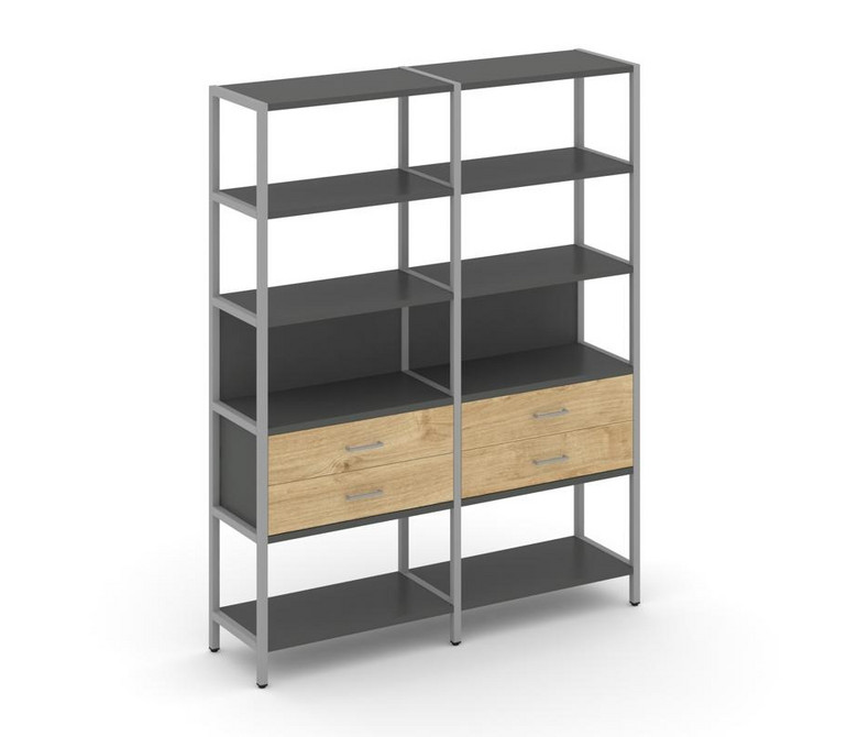 Shelf System Двухсекционный стеллаж пятиярусный с ящиками SN.STM-522 Антрацит/Тиквуд Светлый/Металл