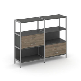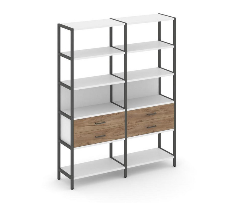 Shelf System Двухсекционный стеллаж пятиярусный с ящиками SN.STM-522 Белый/Дуб Табак/Металл Антрацит