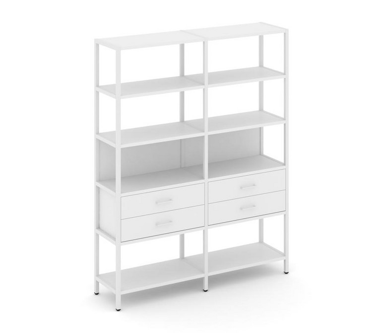 Shelf System Двухсекционный стеллаж пятиярусный с ящиками SN.STM-522 Белый/Металл Белый 1590*400*198