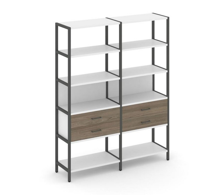 Shelf System Двухсекционный стеллаж пятиярусный с ящиками SN.STM-522 Белый/Вяз Благородный/Металл Ан