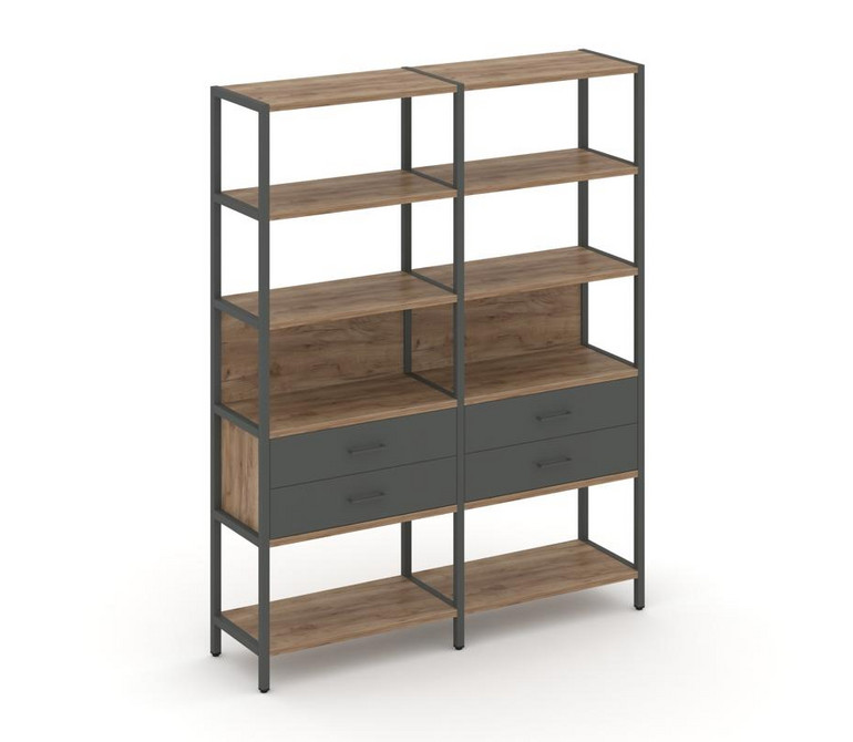 Shelf System Двухсекционный стеллаж пятиярусный с ящиками SN.STM-522 Дуб Табак/Антрацит/Металл Антра