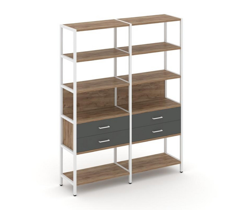 Shelf System Двухсекционный стеллаж пятиярусный с ящиками SN.STM-522 Дуб Табак/Антрацит/Металл Белый