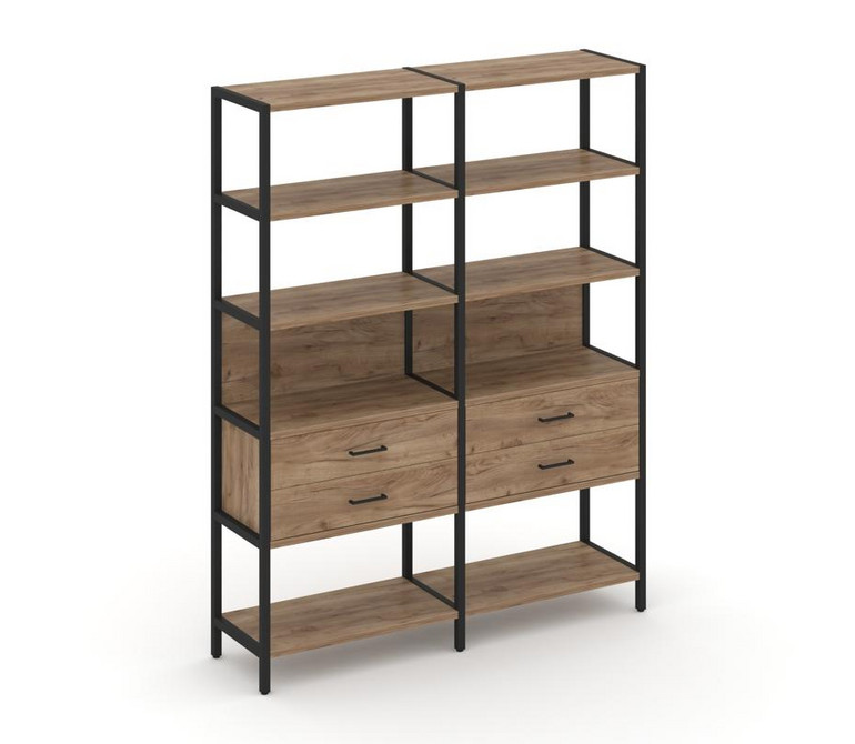 Shelf System Двухсекционный стеллаж пятиярусный с ящиками SN.STM-522 Дуб Табак/Металл Черный 1590*40
