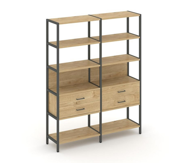 Shelf System Двухсекционный стеллаж пятиярусный с ящиками SN.STM-522 Тиквуд Светлый/Металл Антрацит