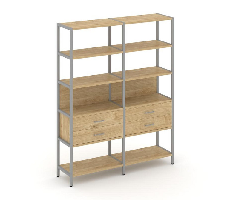Shelf System Двухсекционный стеллаж пятиярусный с ящиками SN.STM-522 Тиквуд Светлый/Металл Серый 159